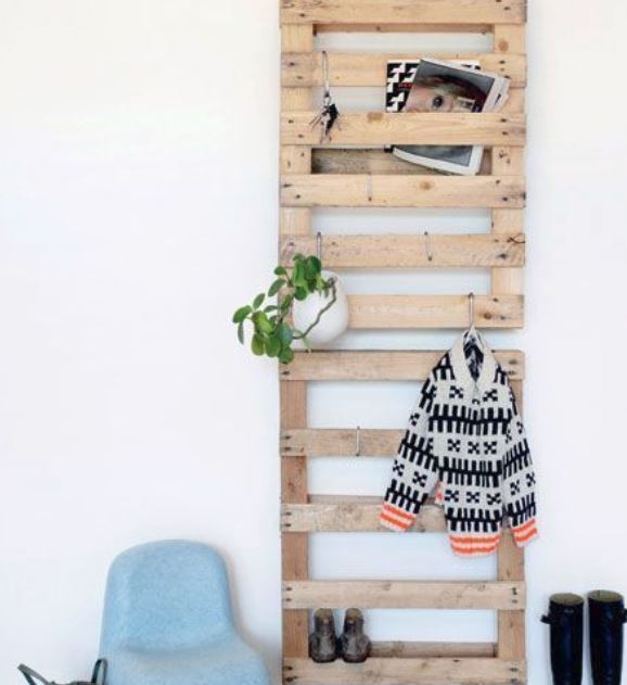 7.สุดยอดไอเดียนี้ คือการนำไม้พาเลท มาทาสีใหม่ให้สดใส (ตามความชอบ) ปรับแต่ง รูปแบบการวางตามความชอบแต่ละคน หลังจากนั้นก็หยิบมาติดผนังเรียงกันให้สวยงาม พร้อมปักหมุดไว้ยึด แค่นี้เราก็มีราวแขวนเสื้อไม่ซ้ำใคร